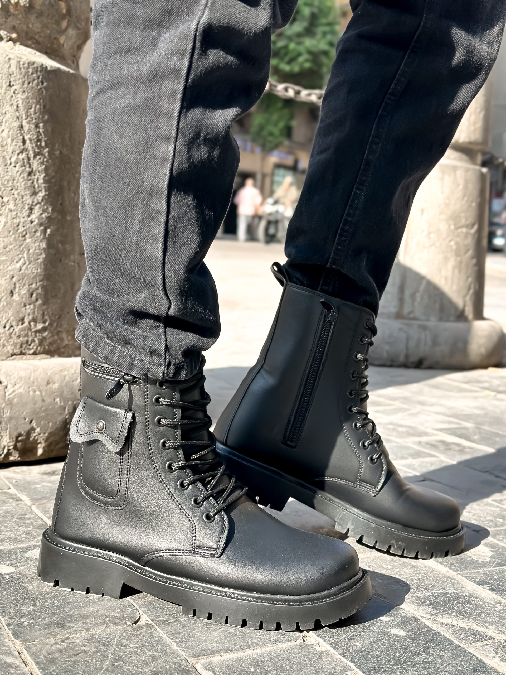 تمتّع بإطلالة مميزة مع هذا البوت الأسود المصنوع من الجلد عالي الجودة ، الذي يجمع بين المتانة والأناقة ليكون الخيار الأمثل لأجواء الشتاء والخريف.