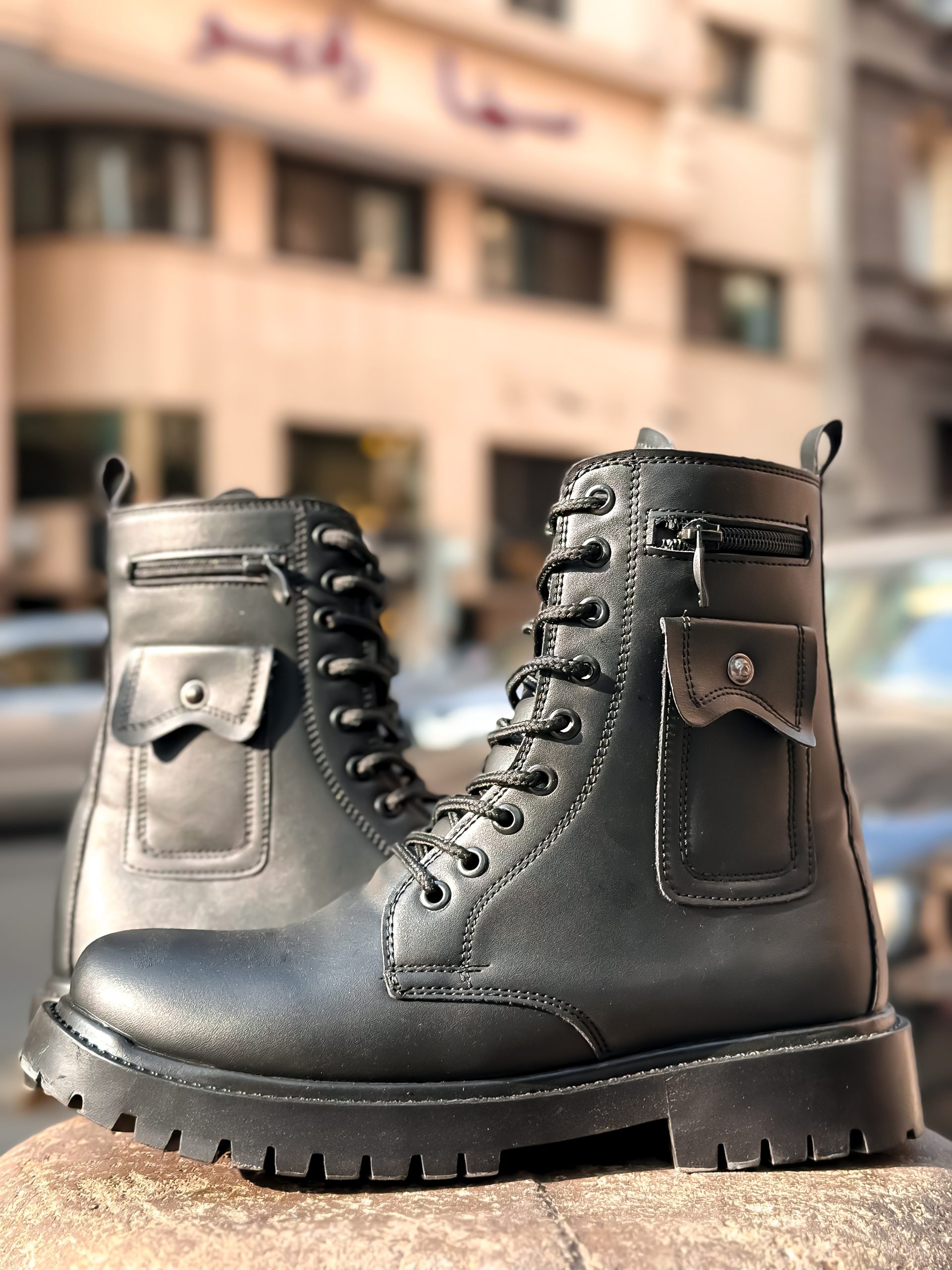 بوت جلد أسود عصري وقوي – هاي كوالتي بنعل رابر