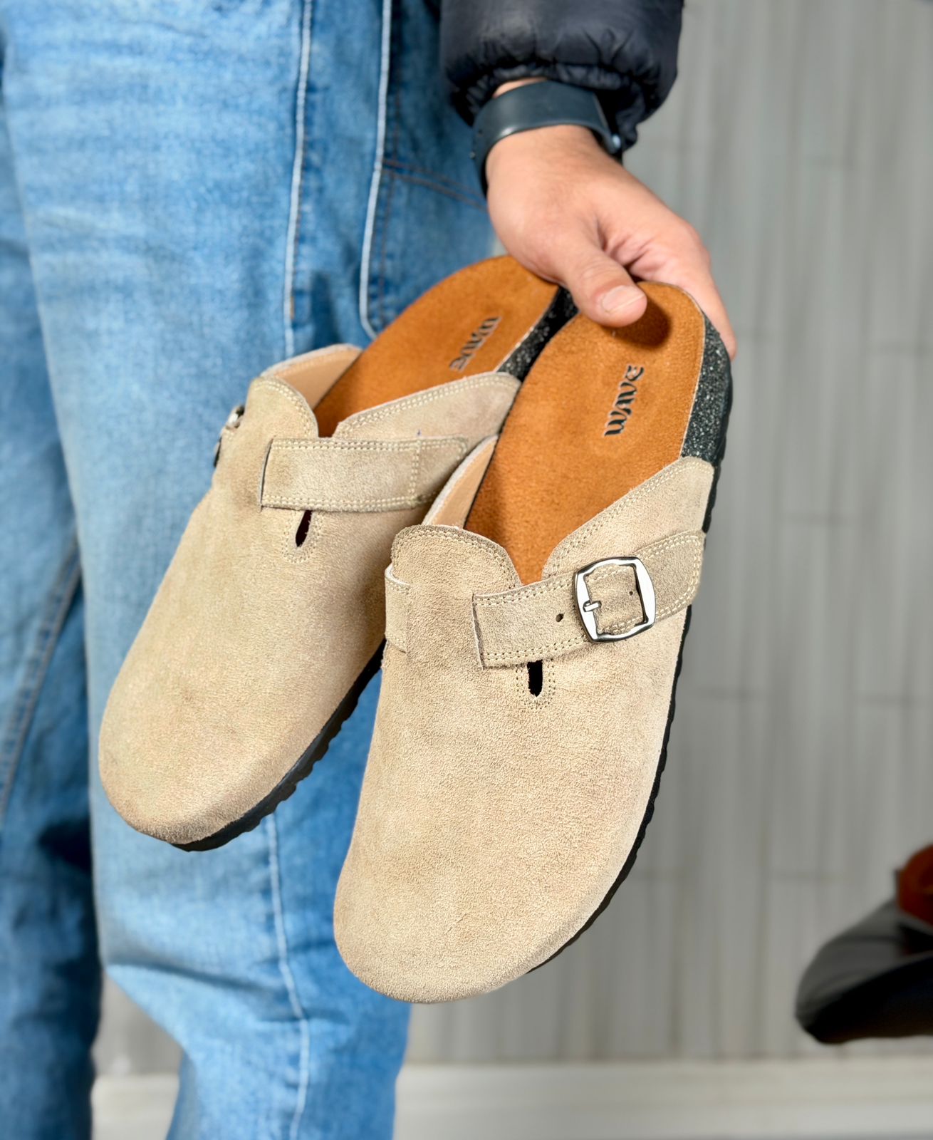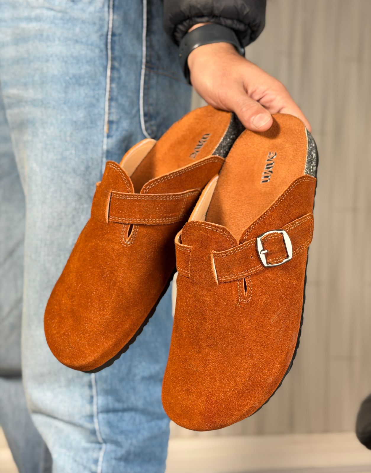 * خامة جلد طبيعي 100% (Suede) ملمس ناعم وجودة تدوم.